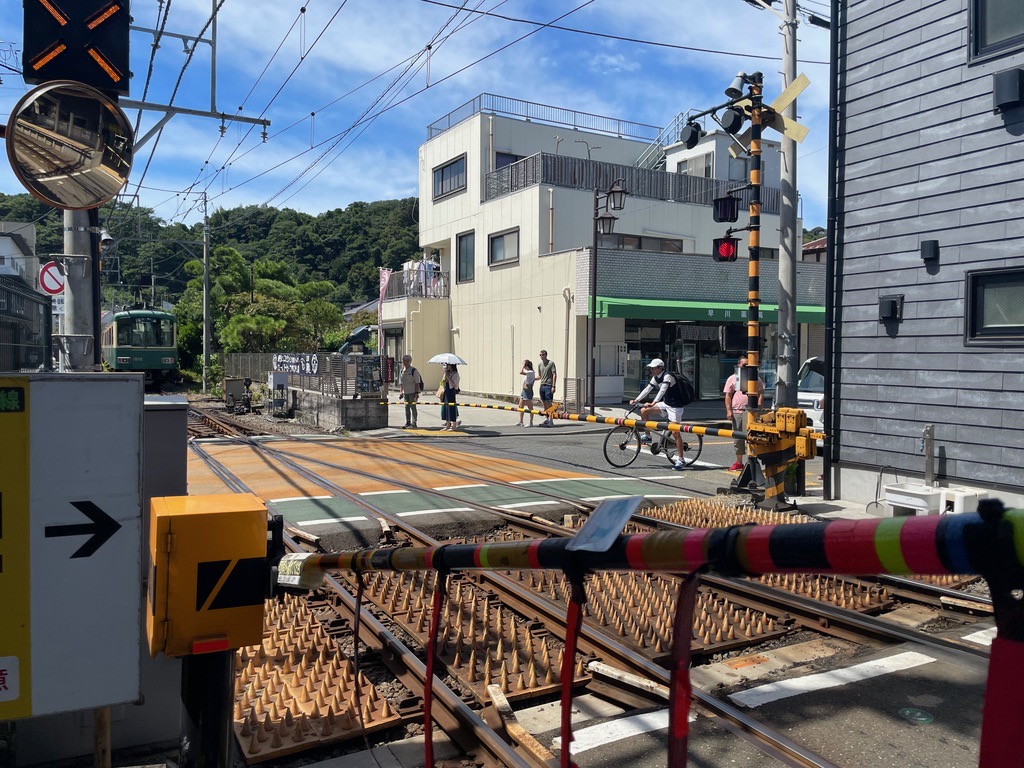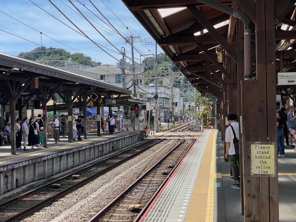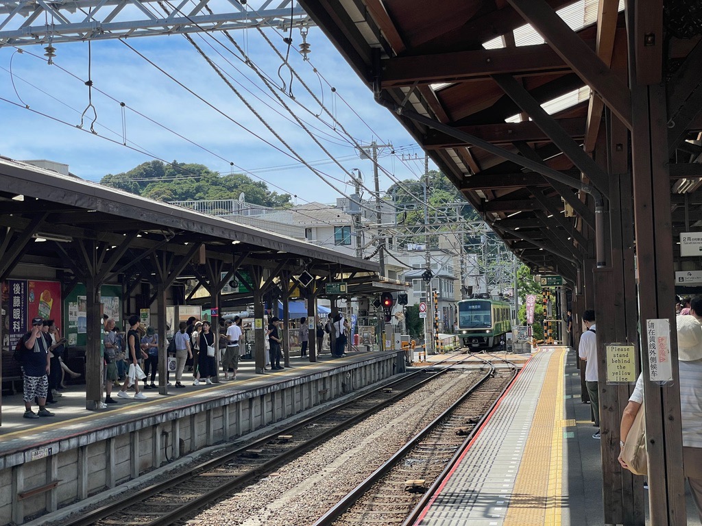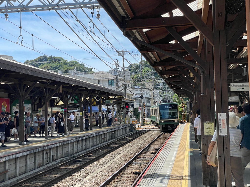 | Enoden tram at Kamakura Station. |