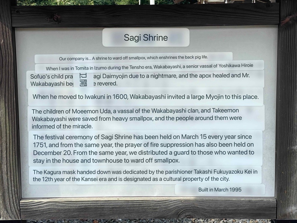 | Neighborhood shrine in Iwakuni, translated. |